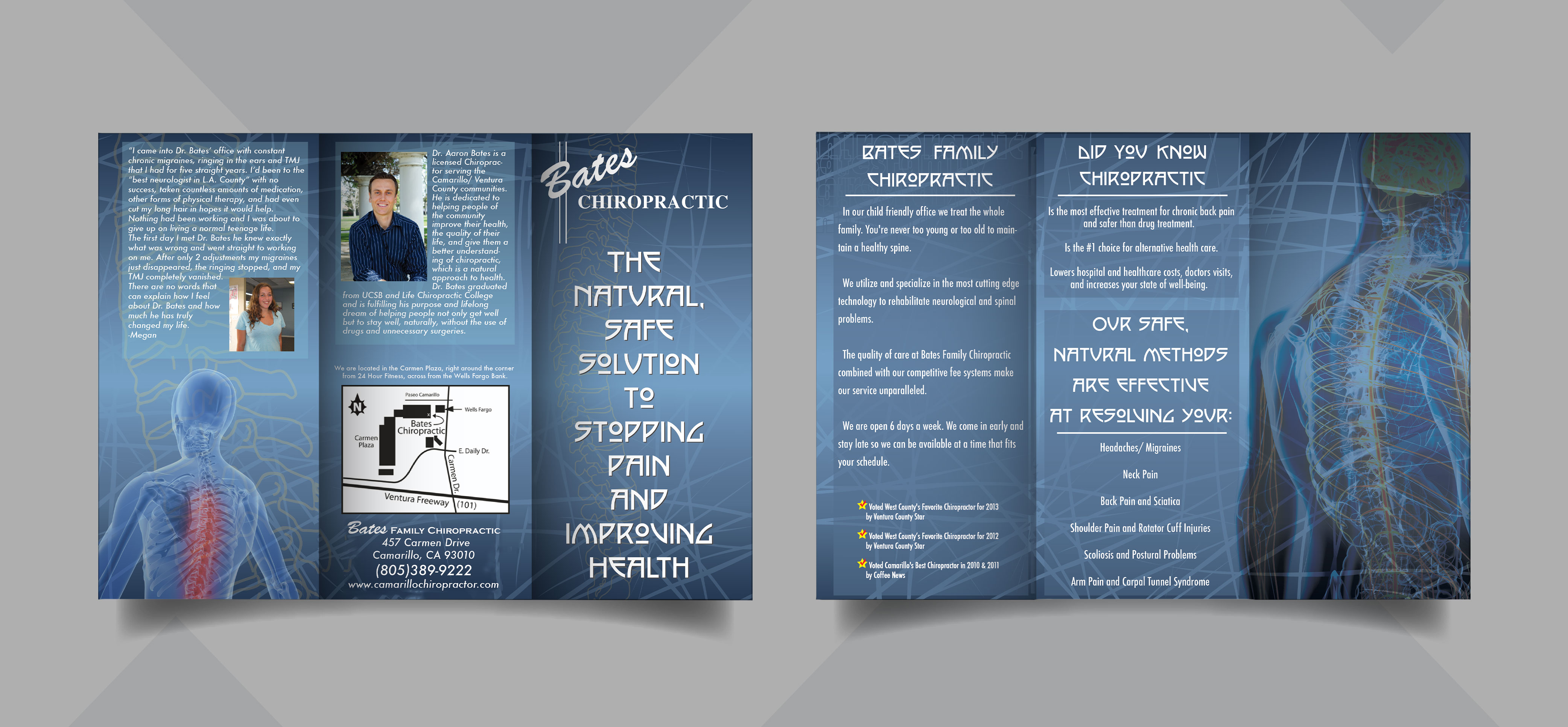Create a trifold pamphlet for Dr. Bates' chiropractic business.